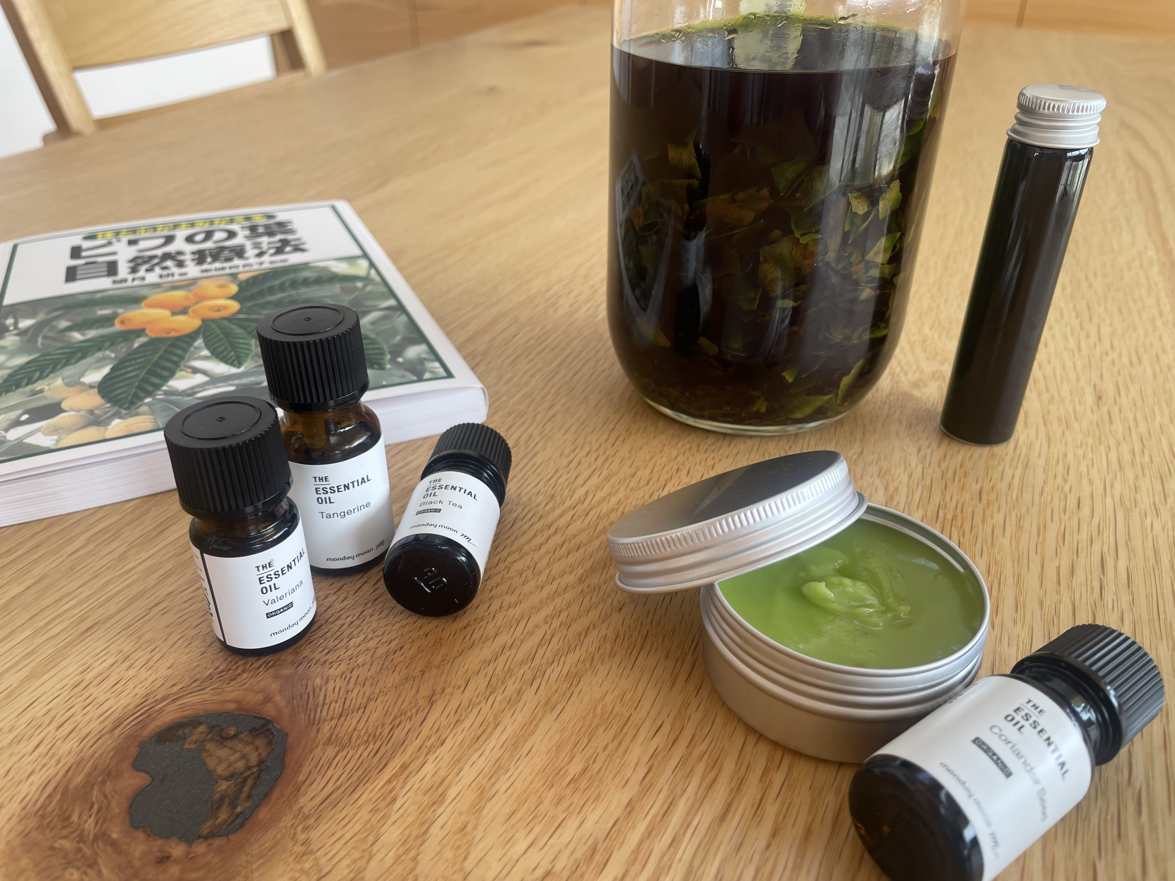 ヨモギや今回のビワや柚の葉などから、ラベンダーやローズマリーなど香りの高い薬草などを